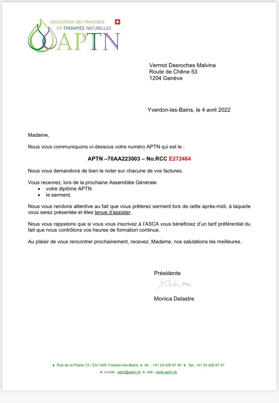 - Membre APTN- Association des Praticiens en Thérapies Naturelles Suisse.