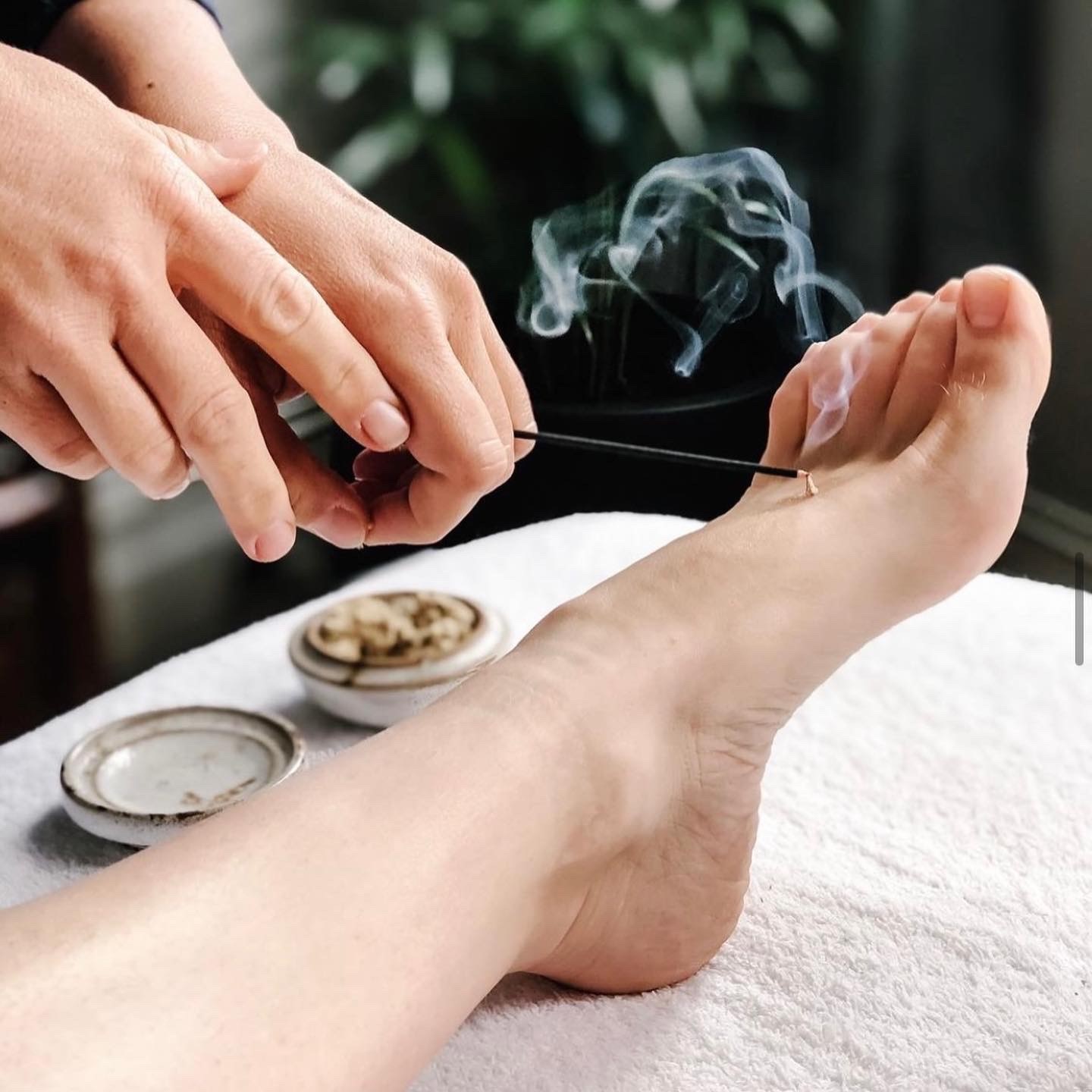 Alternative medicine and east asian healing methods concept with acupuncture dummy model with copy space. Acupuncture is the practice of inserting needles in the subcutaneous tissue, skin and muscles